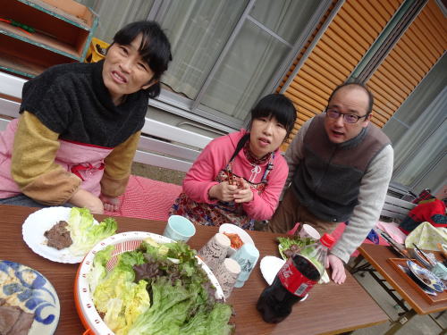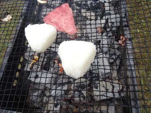 牛肉、鶏肉、焼きおにぎり、野菜・・・食べるペースの速いこと(ー_ー)!!