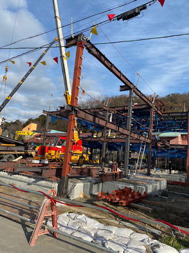 住宅棟の鉄骨。どんどん出来上がっていってます。