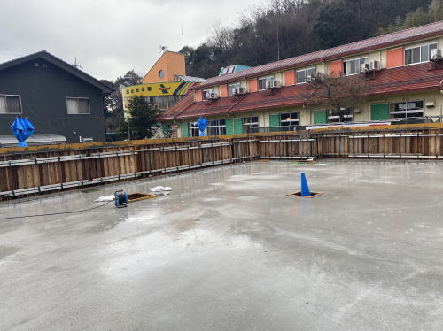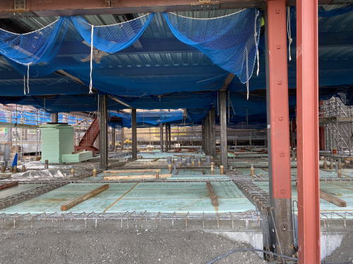 前回のブログで掲載した、断熱材を敷いた後にスラブ配筋されていたところにコンクリート打設されました。