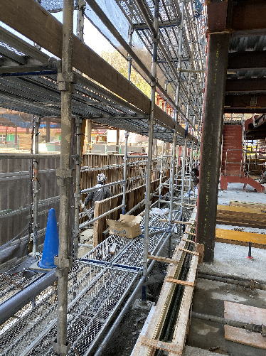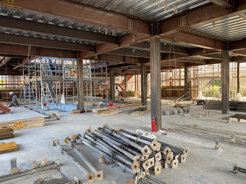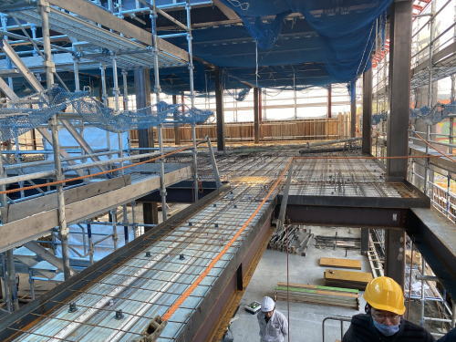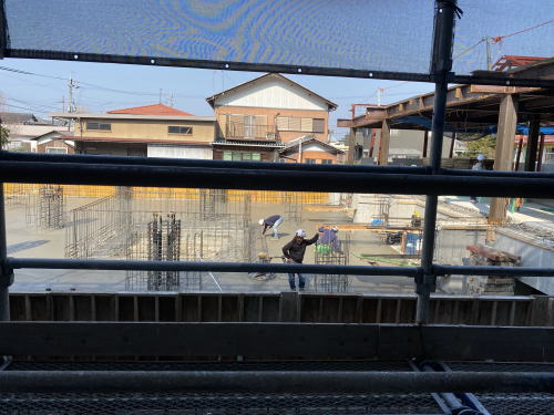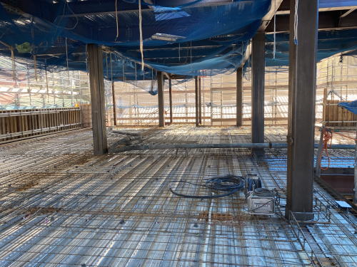 本館棟B工区の基礎コンクリート打設後の様子が見えました。