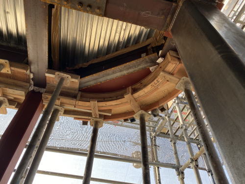 2階のテラス部分。上を見上げると型枠が丸い!!
