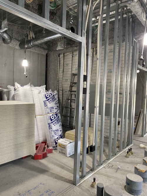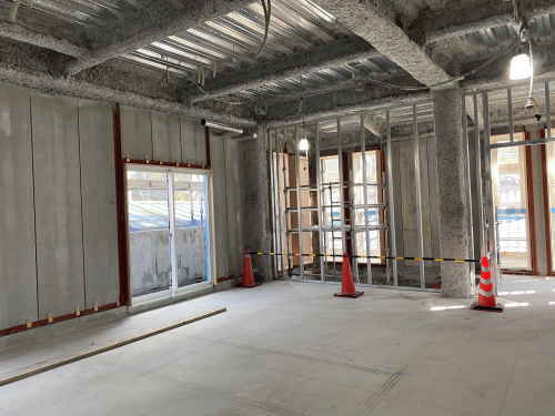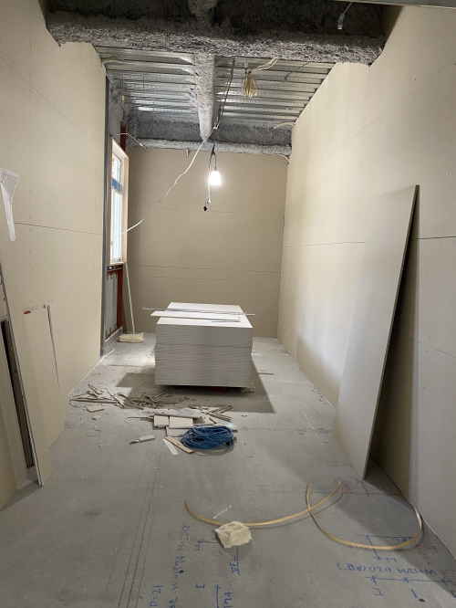 このお部屋は遮音壁ボード貼りがされていました。なんとなく部屋っぽいです。