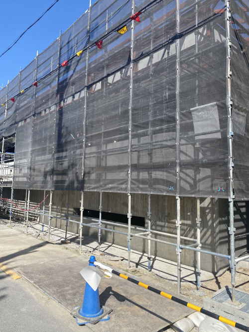 本館棟の外観です。足場が組んであってシートがしてあるので今はまったく見えません。