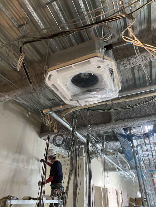 リビングの大きなエアコン、すごい配線です。