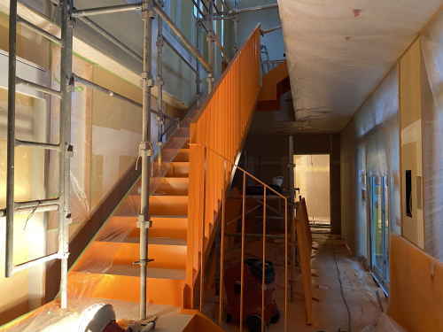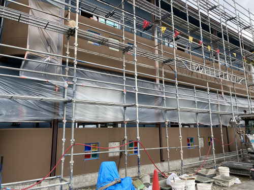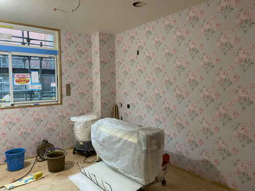 本館棟は住宅棟より少し遅れての工程になります。本館棟のクロスもお楽しみに。