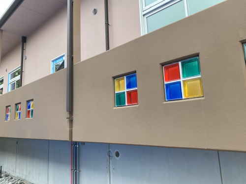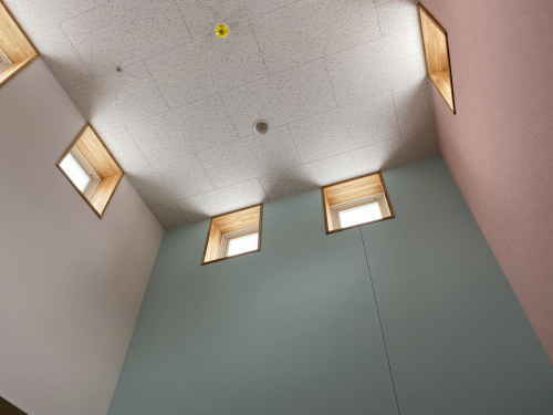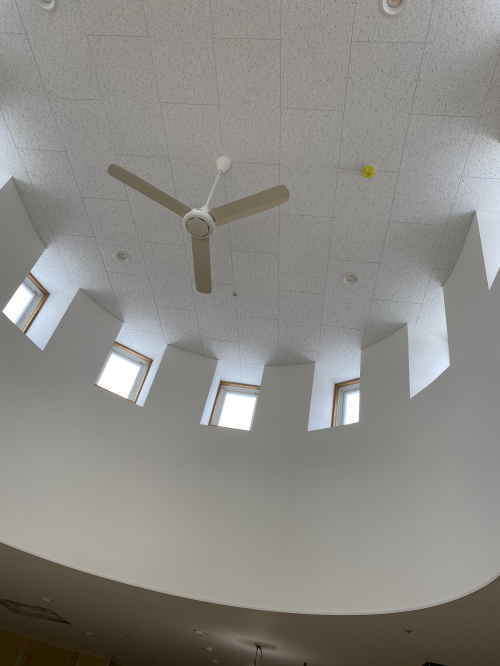 新本館棟のドーム部分が完成しました。あとは窓にカラーのフィルムが貼られますので、お日様が当たると、赤や黄色、緑の光が差してとてもきれいだと思います!!