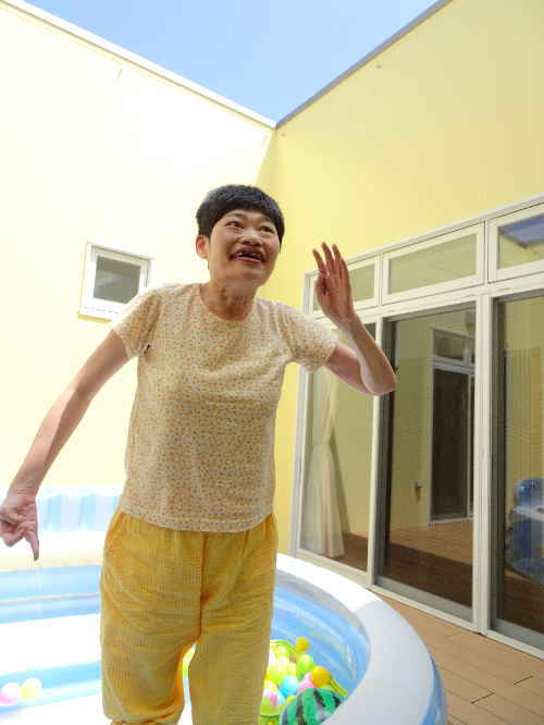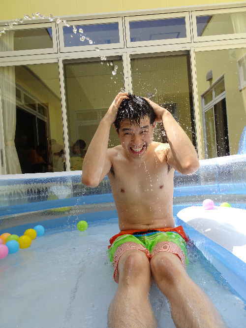 新しい本館の中庭でプールをしました。いい笑顔です☆彡