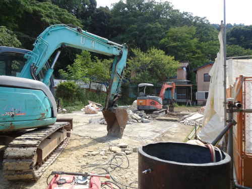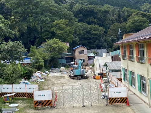 新しい建物は完成しましたが、50年近く経つ古い奥の建物を解体しています。