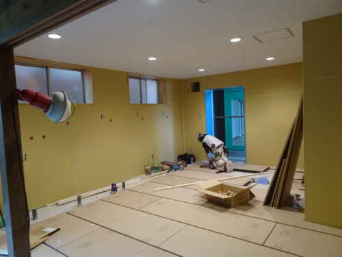 食堂のある新館と新しく建った本館をつなげる通路兼洗濯室として生まれ変わります。
