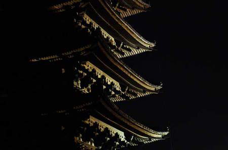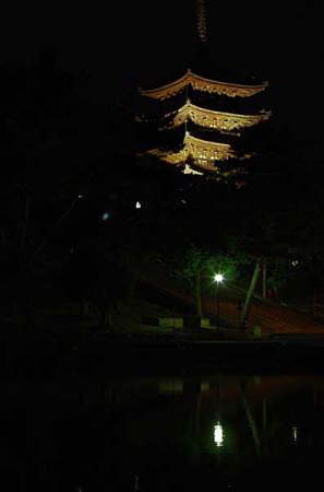 闇に浮かび上がる興福寺の塔