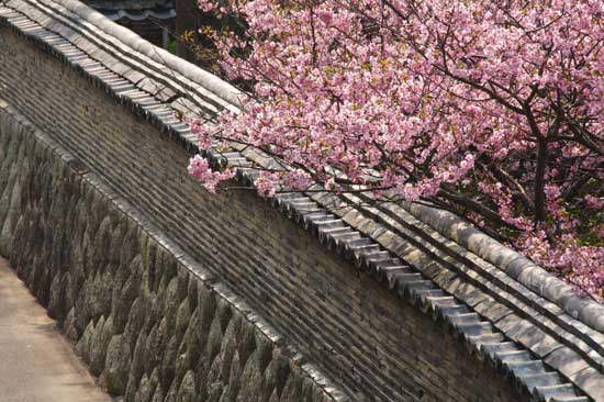 駐車場の近くの寺院の庭に河津桜が見事な花を咲かせていました。 |