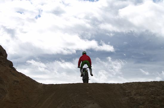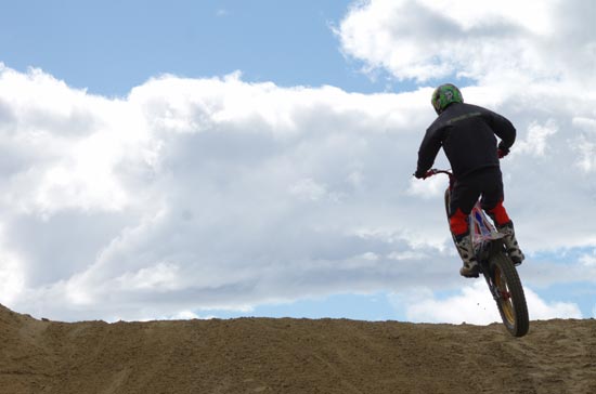 轟く爆音、宙を舞うバイク、舞い上がる土煙。