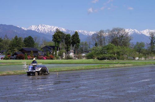 安曇野から糸魚川へと残雪の北アルプスを眺めながら