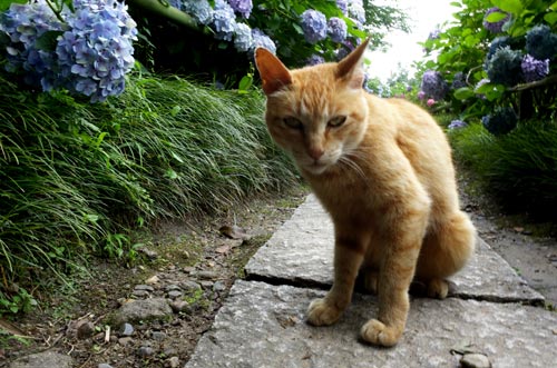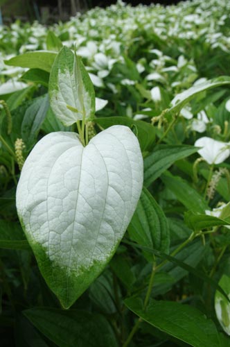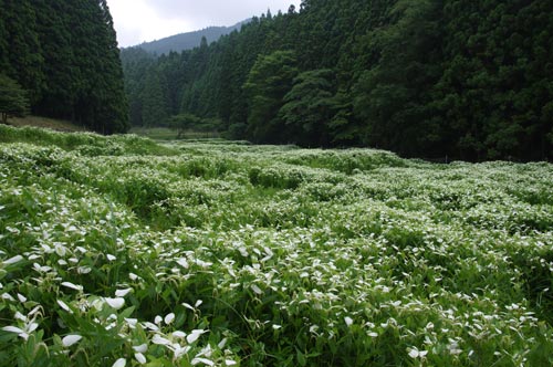 道の駅で小休止の後、紫陽花咲く小径を進むと半夏生の群生が