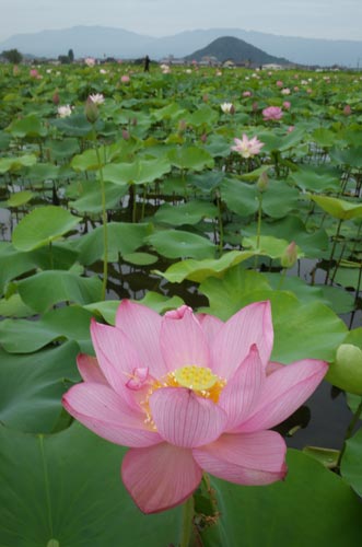 藤原宮跡では、開花したてのハスが涼やか迎えてくれました