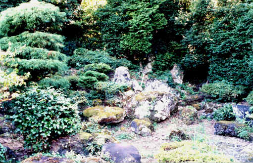 庭 園 境内東方の旧社務所(松林坊)跡に、庭園がある。 作者、製作年代不詳ではあるが、その形態や古記録に依れば、桃山後期から江戸初期の作であることは間違いなく、その豪壮な造りは文化遺産に値するものがある。なお口伝ではあるが、堺の鞘師にして豪商、秀吉の御伽衆でもあった曽呂利新左衛門の作と伝わっている。