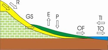 G![]() | OF 表面流出 湿地から傾斜に沿って水路に流れる水。洪水時に氾濫した水が、河川水位が下がった後に川に戻る水も含む。湿地が水路の起点になる場合もある。 |