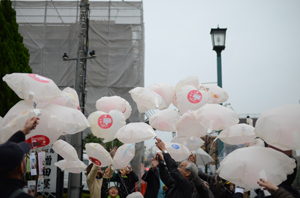 あいにくのお天気でしたが、風船に絵を描き、空に飛ばしたときには歓声があがりました。