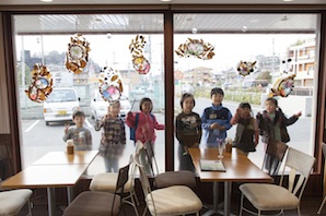 作品は、「リレイス」のまどに吸盤で張り付けました。