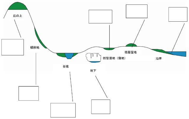 図A2.1 湿地の景観配置[注:四角枠はそれぞれのタイプの適切な写真を入れるためのものである。]
