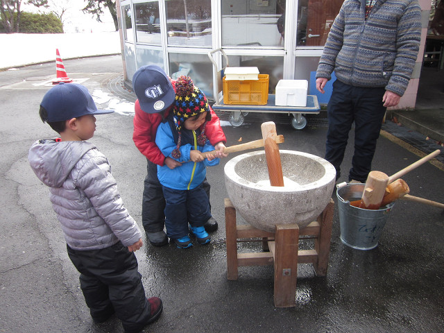 | 1月11日(日) 12:00頃~ 杵でお餅をついてみよう! ついて頂くお子さんは 当日の受付先着20名! 虹の家窓口にて 9:00から受付 お子さんへ ふるまい無料! |