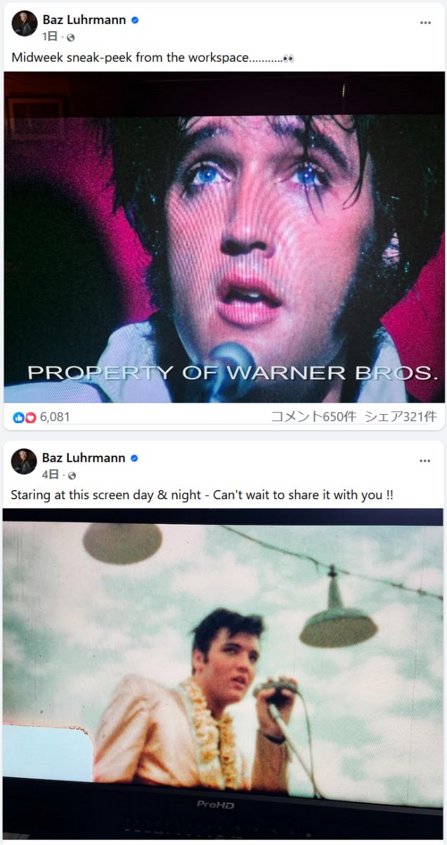 バズ・ラーマンの Facebook に エルヴィス映画関連の投稿が 続いています。