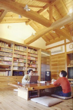 | 木の家の2階リビングで、木を満喫して、楽しいひとときを過ごしてみませんか。 | ![]() |