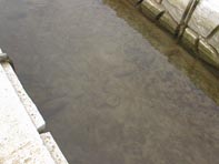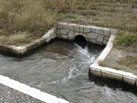 また、工法についてもただのコンクリートの三面張りでなく、擁壁側面にはたくさんの深い溝が掘られていたり、亀やホタルの幼虫等水辺を行き交う生物が出入りし易いように約20メートルおきに法面に斜路を設けるなど実にたくさんの工夫をしていただきました。今後は生物たちがその環境で自然に増殖していってくれるのを待つだけです。