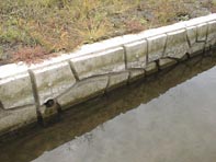 化粧型枠による壁面の溝でコケ類や貝類の付着を促す