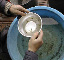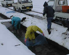 近年この小川に注ぐ河川の改修工事が始まり、最も影響を受けやすい場所からメダカを保護することになり、私たちは雪の残る中100匹余りのメダカやタナゴを捕まえ、万一を考えてそれぞれが20匹ずつ飼育することになりました。