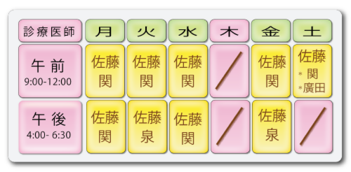 *土曜日の第二診は関医師、廣田医師の交代性です。