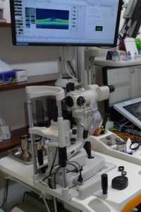 患者様の前眼部(まぶた、結膜、角膜、虹彩、水晶体など)を顕微鏡で観察する機器。
