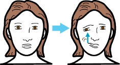 顔の表情は顔面皮下の多数の筋肉(顔面筋)の働きにより、繊細な表情がつくられます。「顔面けいれん」は顔の半分が不随意(自分の意志とは関係なく)にピクピクと動く病気で、目の周囲がピクピクと動く症状から始まり、やがて額、頬、口の周りが反射的にひきつる状態です。程度はいろいろですが、精神的に緊張したときに出現しやすく、症状が強い場合には目が開きにくくなったりします。自然に治ることはありません。