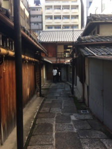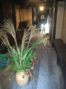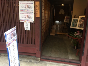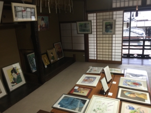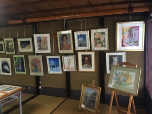 場所は絵画教室(アポロ美術学院)の向かいで京都市の烏丸新町の町屋で、祇園祭の時の放下鉾(ほうかぼこ)が仕舞われているところです。めったに入ることのできない所に入ることができ、また、その建物、部屋の雰囲気も素晴らしいものでした。沢山の方に見に来ていただき有難うございました。