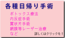 医院の特徴は各種の日帰り手術を行っていることと小児眼科を得意とすることです。