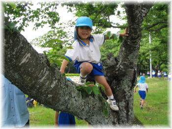 | 子どもたちでも登れそうな木だったので どんどん登る子どもたちでした。 |