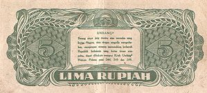 インドネシアの通貨オランダ統治時代から戦後にかけての紙幣とコイン[ オランダ統治時代から戦後|1998年頃までの貨幣|1999年頃〜|現在 ] 1910年 オランダ統治時代の1000ギルダー紙幣 大変大きな紙幣です。 ![]() ![]() サイズ : 11×18.6cm 100ルピア紙幣 (1943年) 日本軍統治下で発行された100ルピア紙幣 大日本帝国政府の印字が読み取れます。 「ROEPIAH(ルピア)」の綴りも今とは違いますね。 ![]() ![]() サイズ : 8.5×17.5cm 1ルピア紙幣 (1945年) ![]() ![]() サイズ : 6.5×14cm 25セン紙幣 (1947年) サイズ : 6×10cm 他の紙幣と同じ縮小率だとこれくらいになります。 おもちゃみたいな小さな紙幣です。 5ルピア紙幣 (1947年) ![]() ![]() サイズ : 7×14.8cm 1ルピア紙幣 (1951年) ![]() ![]() サイズ : 6.5×12.6cm 1ルピア紙幣 (1956年) ![]() ![]() サイズ : 6×13cm 2 1/2ルピア紙幣 (1956年) 「1/2」という表記が面白いです。 ![]() ![]() サイズ : 6×12.9cm 1ルピア紙幣 (1960年) ![]() ![]() サイズ : 6×11.8cm 2 1/2ルピア紙幣 (1961年) ![]() ![]() サイズ : 6×11.8cm