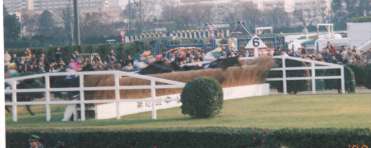 2周目の障害にさしかかり大生垣でイチバンリュウが落馬。私の本命が消えた瞬間であった。人馬共に無事でなりよりだが。