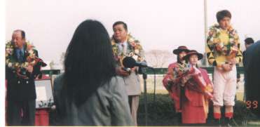 結果が解らないまま急いで内馬場からゴール前ウィナーズサークルまで走った。