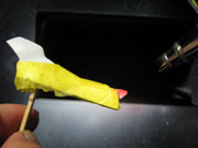 で赤色を吹いたら、吹いた上からマスキングテープを上からベタって貼り付けて不要部分を切り落とします。切り落としたら調合した黒色を吹いておしまい。塗り分け後の写真は取り忘れました。 |