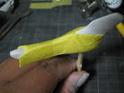 完全に円形だとこのように割と簡単にマスキングが完了出来ます。後はホイルを塗って、同じ要領でバーニア部分をマスキングして完成です