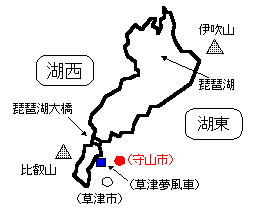 その向こうには,比叡山(左)と「草津夢風車」(右)が見えます。 |