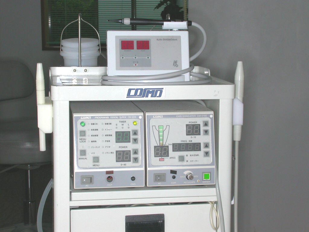 高周波治療器と上に載っているのはむし歯発見器ダイアグノーデントです。