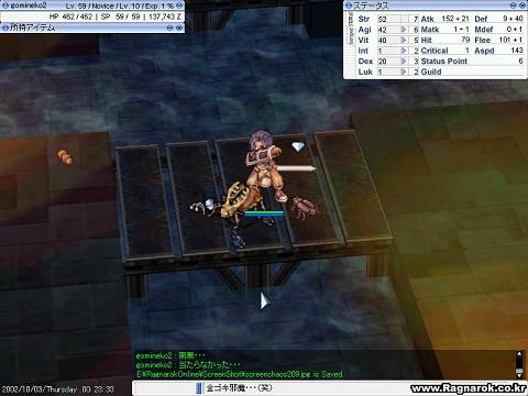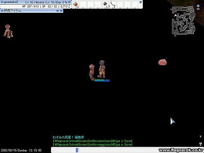 廃坑1Fからゲフェン東に、蝶の羽根で帰ってきた所です。