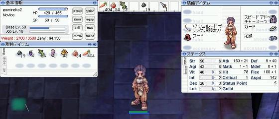 STR:58 AGI:50 VIT:40 INT:1 DEX:20 LUK:11