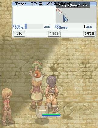 「スティックキャンディ」+1Zeny。当然拒否しました(笑)