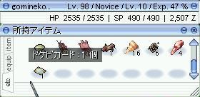 まずは対ミストレスのためのカード狙いで、まったりドケビ狩りへ。