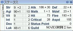 ・・・という訳で、経験値を無駄にしない為に、アカデミーを卒業してから放置していたAGI-LUKノビのレベル上げ。