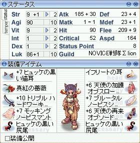 メインノビに耳と尻尾を装備させて、手近なブラジリスDへ。(メインノビは特殊青ポの為にブラジリスセーブ)