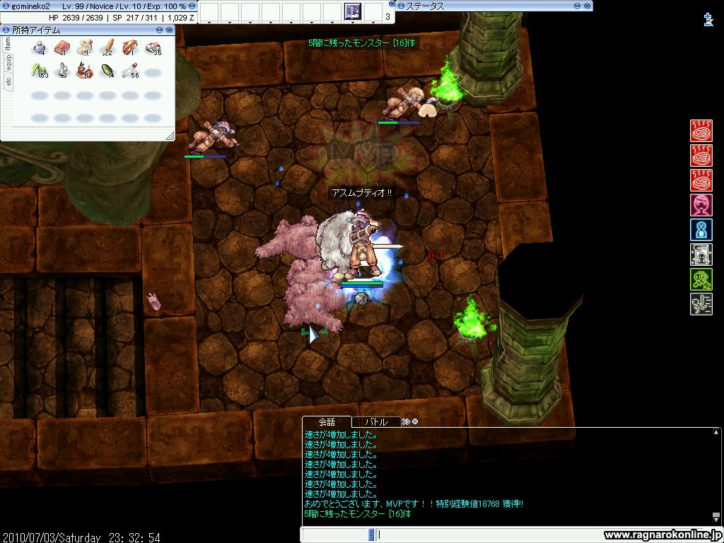 昔、にんじん連打、緊急時に紅ポで金ゴキを倒していた時代が懐かしい(笑)
